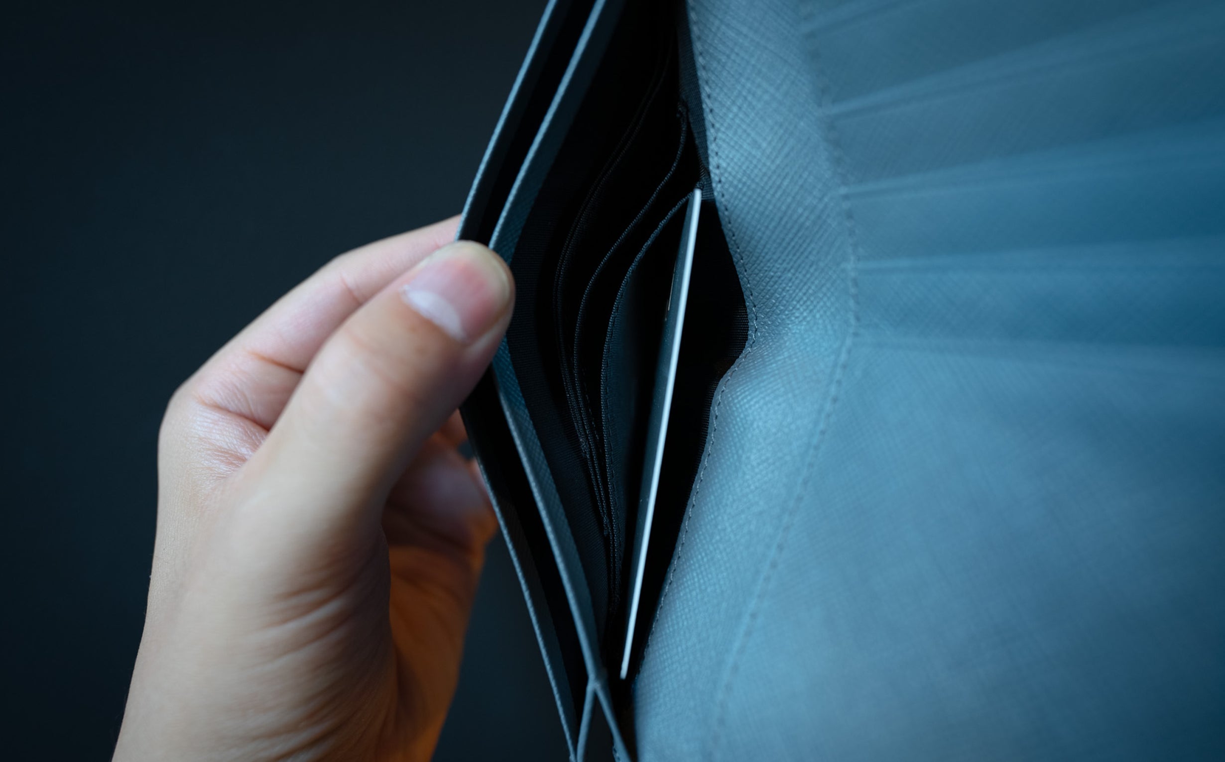 あまり気にしたことがないかもしれません、お財布の裏地。でも実は裏地付きだからこそこの薄さを実現できるんです。革1枚仕立ての方が裏地がない分、薄くできると思われがち。でも実際は違うんです。