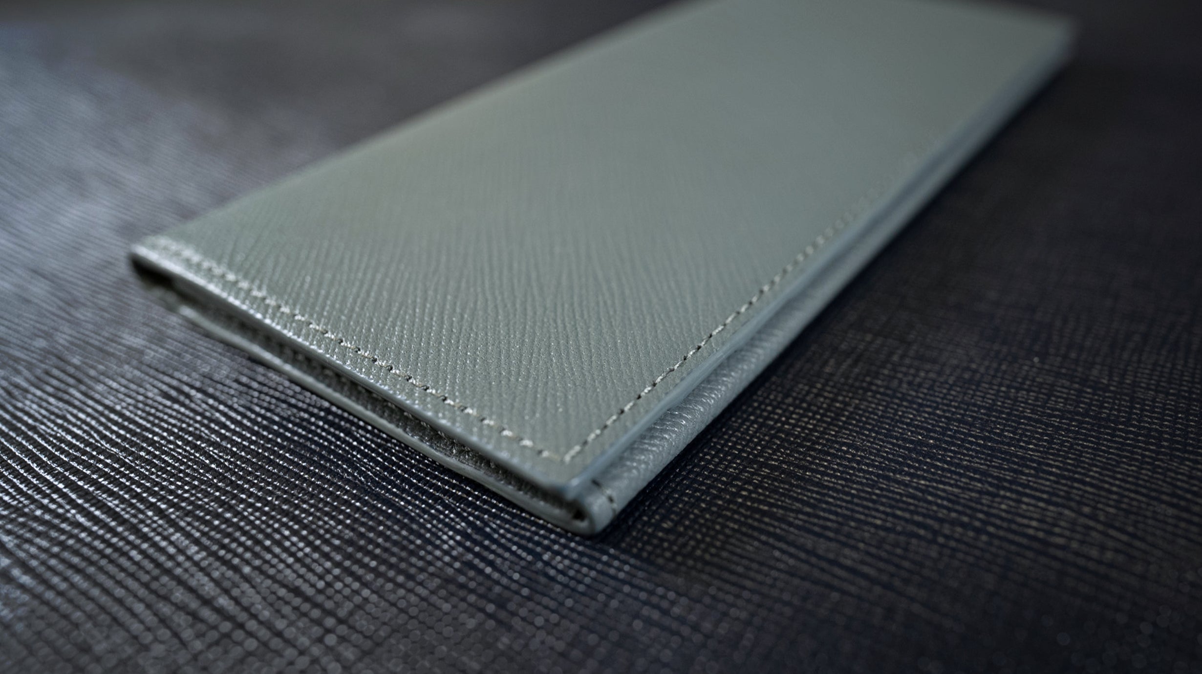 表の模様は傷汚れが目立ちにくいサフィアーノという型押しを採用しています。ぱっと見同じような格子柄を巷でよく見かけるかもしれませんが、今や一般的になったこの型押しの原点とも言える歴史ある金型です。比べると複雑さや印象が全く違います。水汚れにも強く安心です。