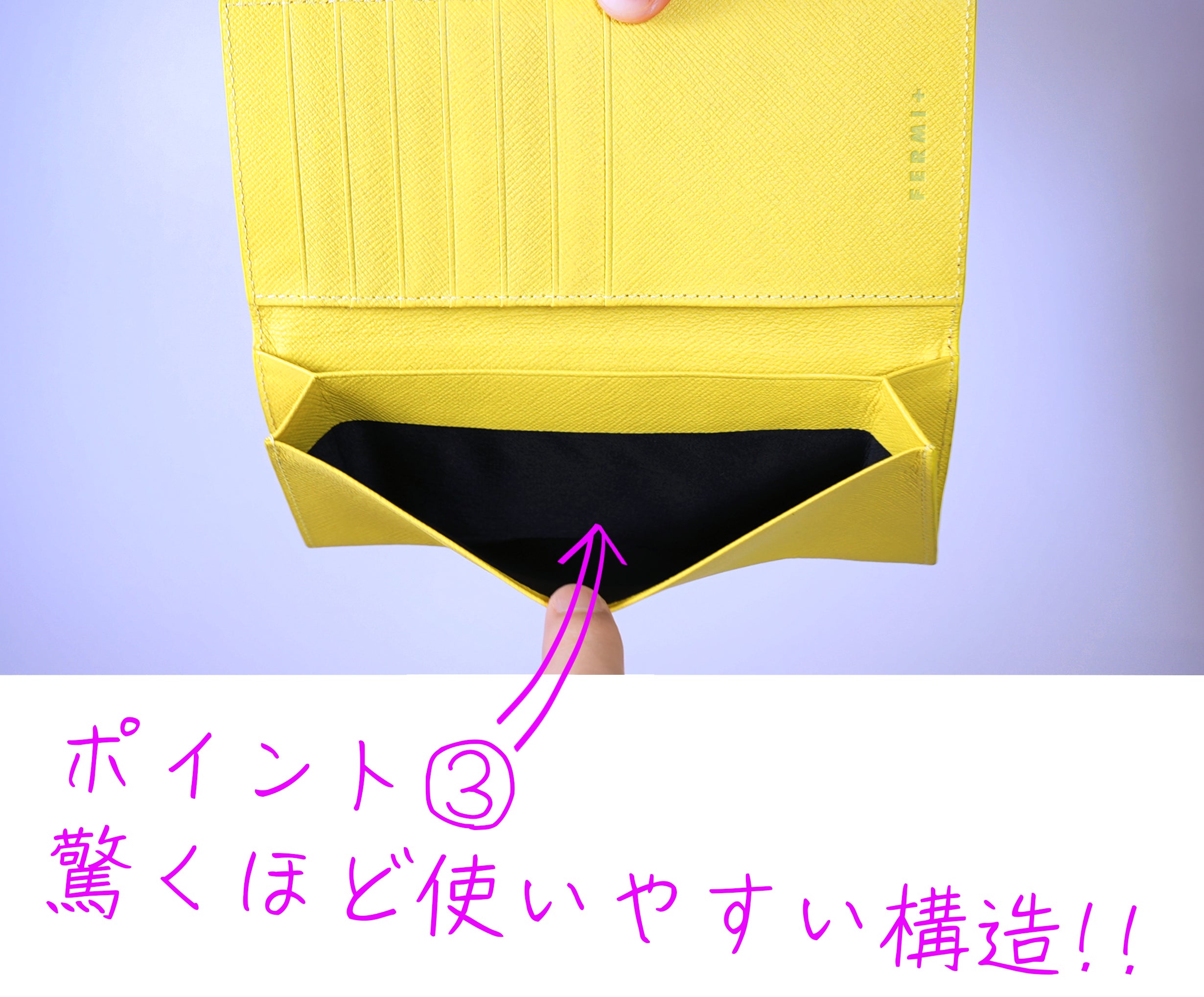 今回、私達がこだわったのが高級感と使いやすさ。最近では小さいお財布が増えてきていて、奇抜な構造や様々な工夫を凝らしてサイズを小さくしています。