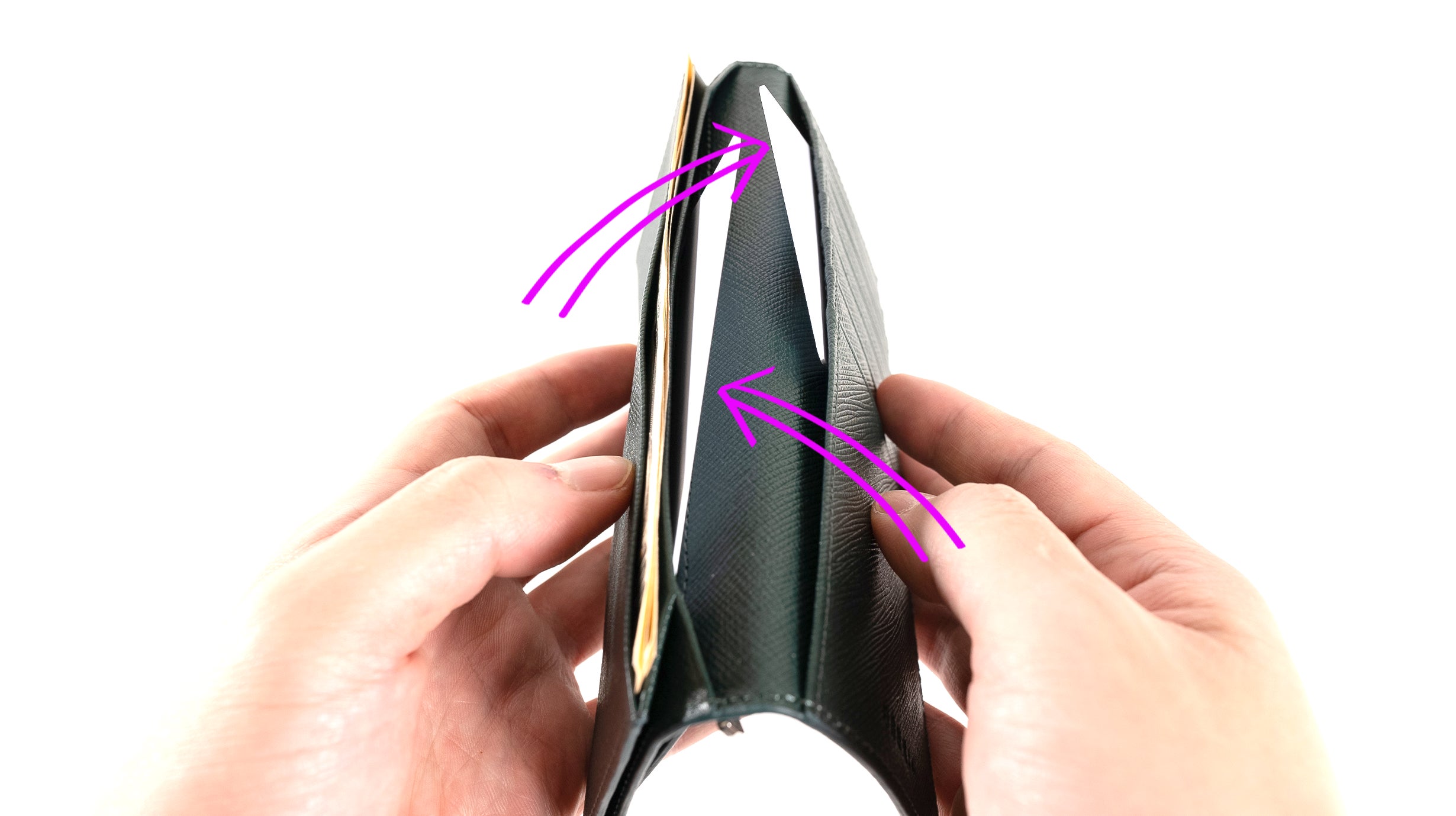 ※壱万円札は一番手前の札入れに入れる構造となります。奥側には入れられる寸法に設計しておりませんのでご了承ください。