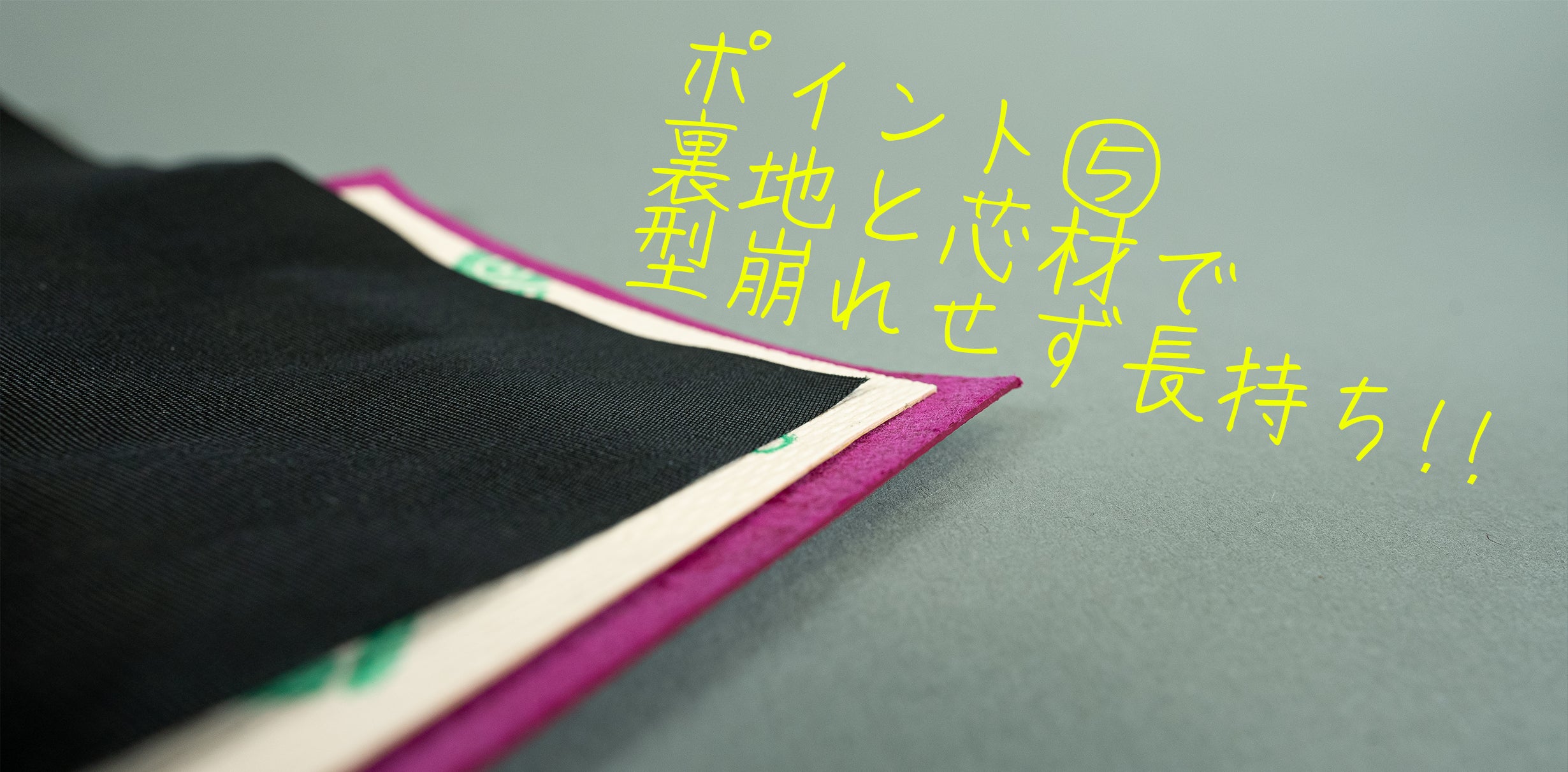 レザーを薄くしたらきちんと芯で補強して型崩れを防ぎつつ、裏地でカバーしてあげる。