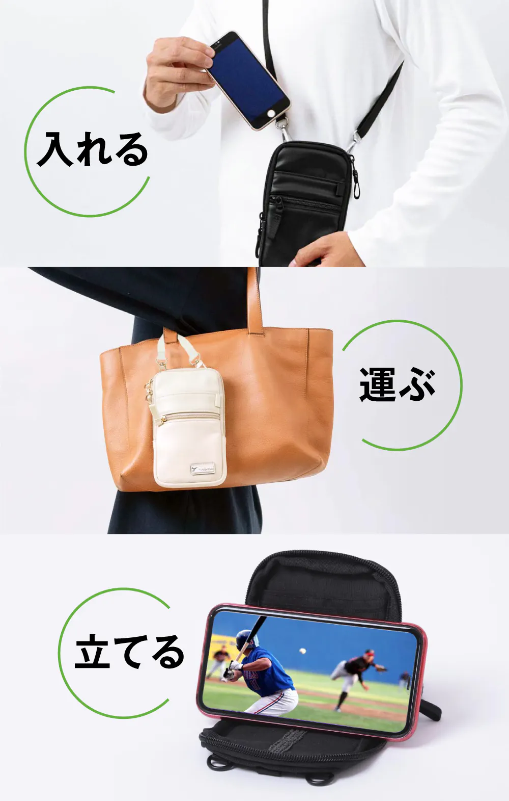 大切で身近なスマホだからこそ、すぐに使える状態で携帯しておきたい。でもポッケに入れるとかさばるからバッグに入れたい、かといって普通のバッグでは大きすぎて取り出しにくい...。