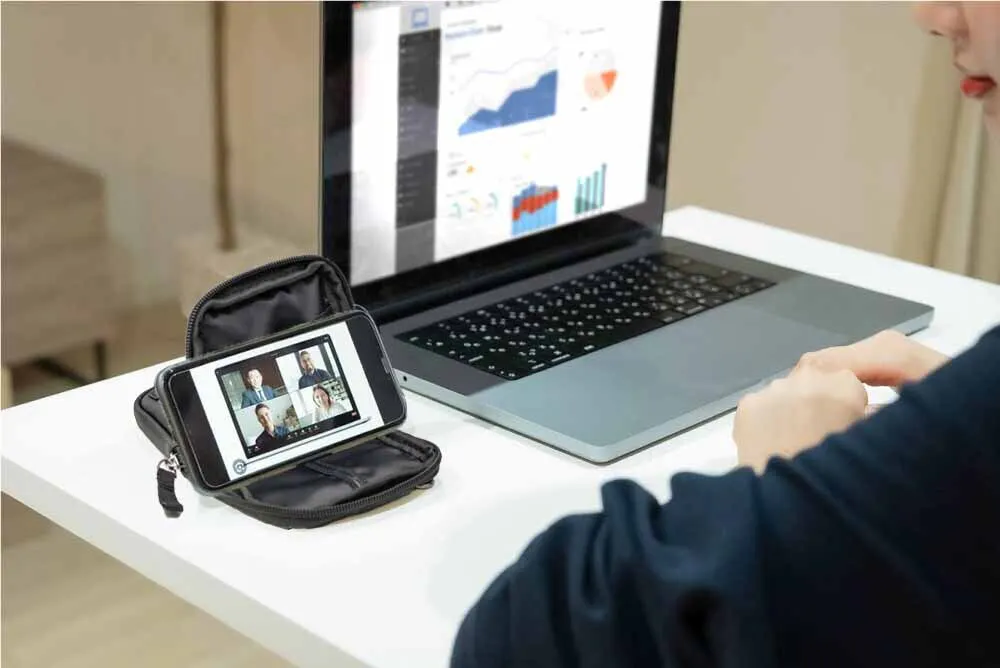 テレワーク中は、スマホをウェブ会議につなぎながら、パソコンで作業をするのがおすすめです。