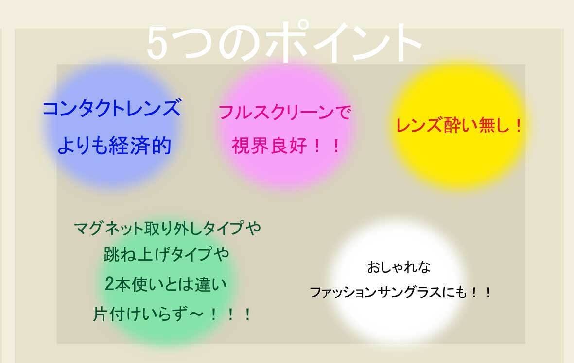 視力が良かったころの当たり前の視界が自然によみがえる感じがします。フロントレンズを遮光レンズに替える事で、サイクリングなどをされる方などは、日中はサングラスのレンズを重ねて、夕方になればサングラスを上げて使い分けする事が出来ます。