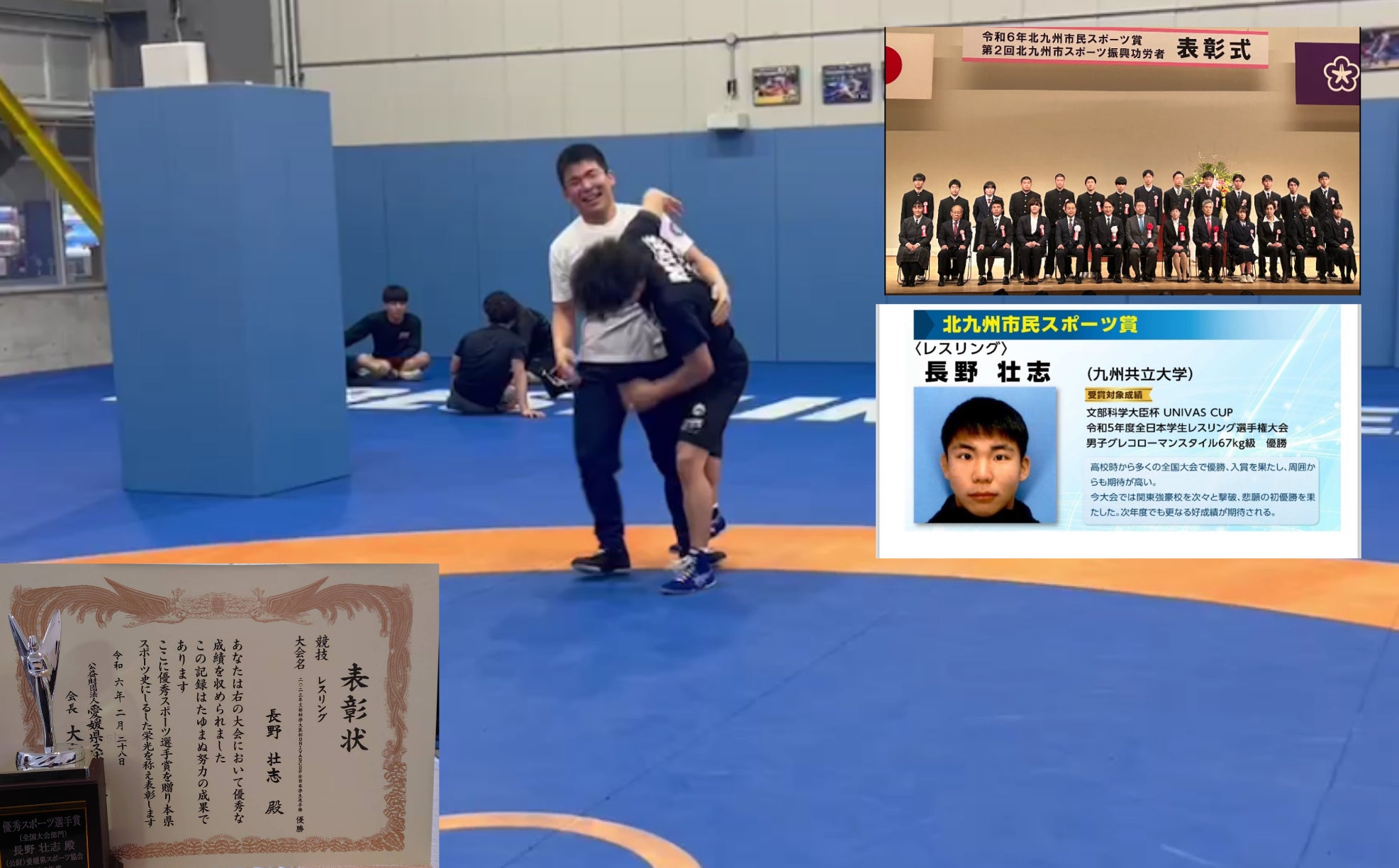 2024/03/13 18:06いつも応援、ご支援を頂きましてありがとうございます。右肩の手術から2ヶ月が経過し、順調に回復しております。2月に表彰式がありましたのでご報告致します。15日に大学の所在地である北九州市から北九州市民スポーツ賞の表彰。28日に地元、愛媛県で愛媛県優秀スポーツ選手賞の表彰を頂きました。復帰後もたくさん表彰して頂けるように頑張って行きますので、今後とも応援、ご支援を宜しくお願い致します。長野 壮志 もっと見る
