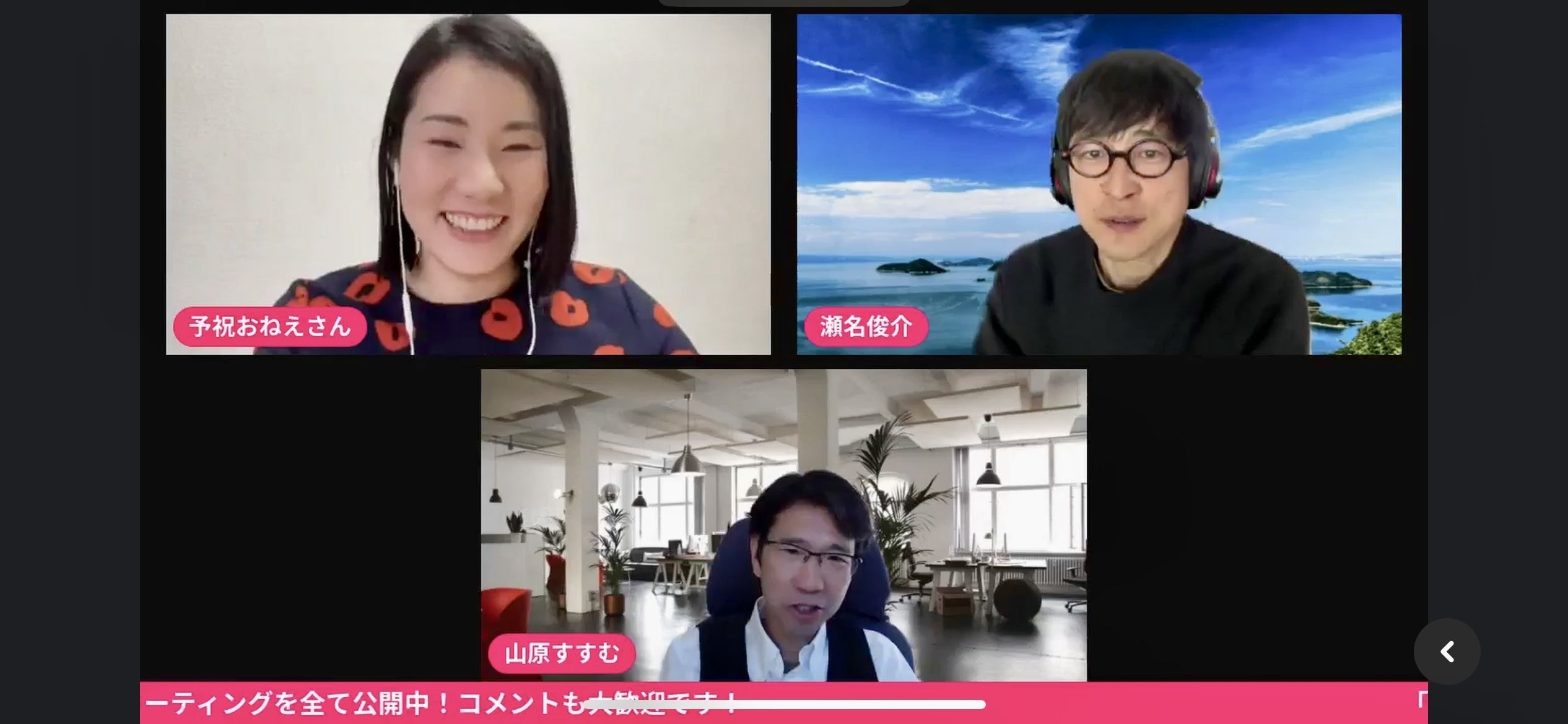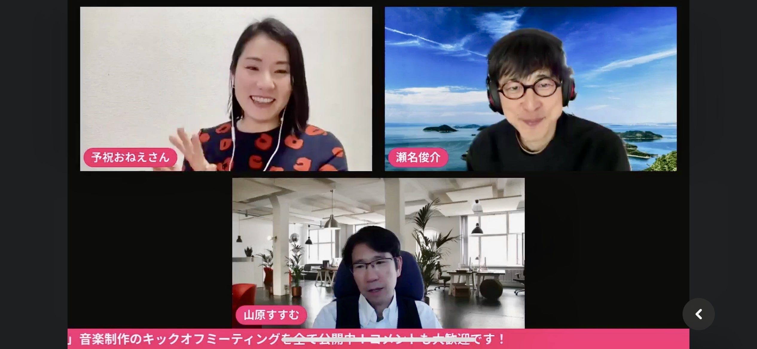 瀬名さん「一文一文からポジティブなエネルギーが伝わってきた。クリエイターとしてうちに篭ってあれこれ考えてしまうことがあるんだけど、予祝をすることで視界が開けるような感じがした。僕にとっても必要なものだと思いました。なので今回はYOASOBIさんみたいに、予祝本を原作として、音楽を作りましょう!」