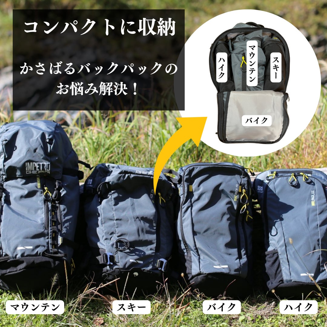 ハイクパック、スキーパックと一応名前はありますが、必要な容量のバックパックをお選びいただいたらと思います。