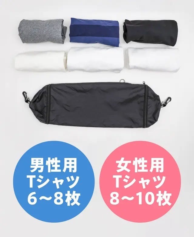 男性用のTシャツなら6~8枚、女性用なら8~10枚も収納可能です。