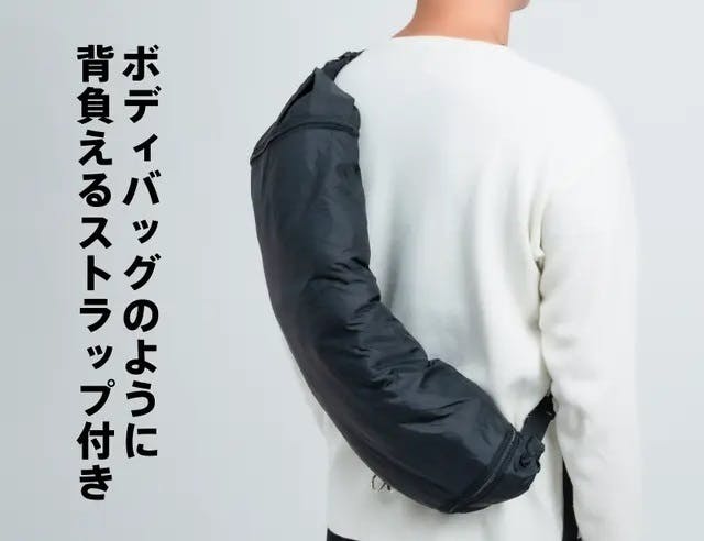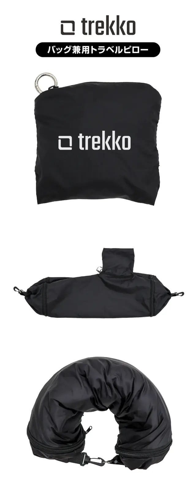 また【trekko トラベルピロー】はボディバッグのように背負えるストラップ付き。