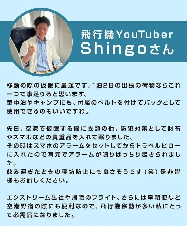 この商品を手に取っていただいた皆様がより快適な旅行を楽しんでいただけたらいいなと願っています。