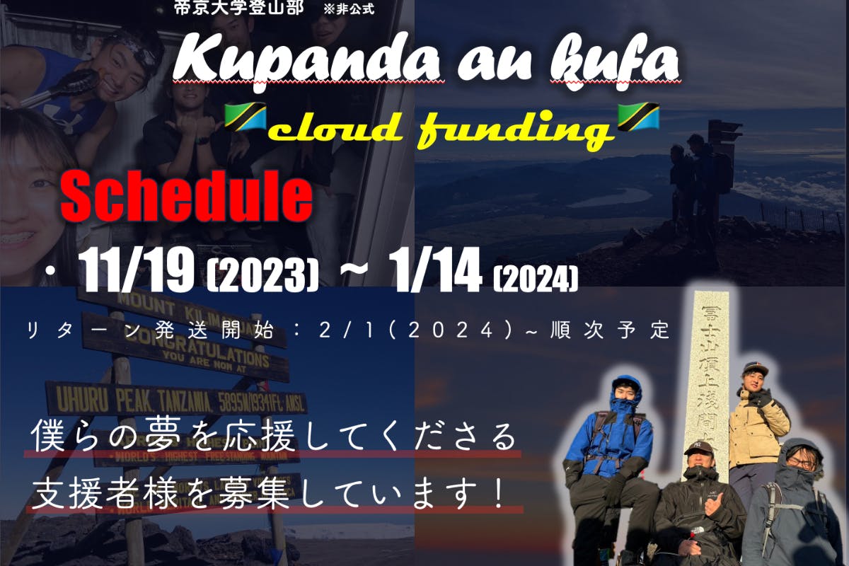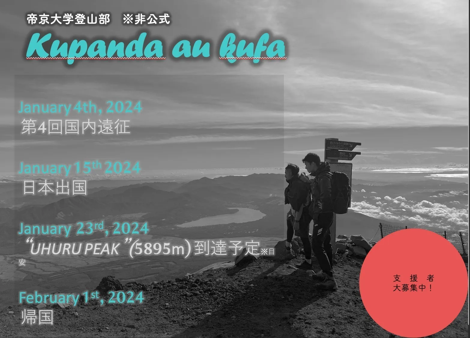 こんにちは。現役帝京大生で構成された登山チームの”Kupanda au kufa"と申します。