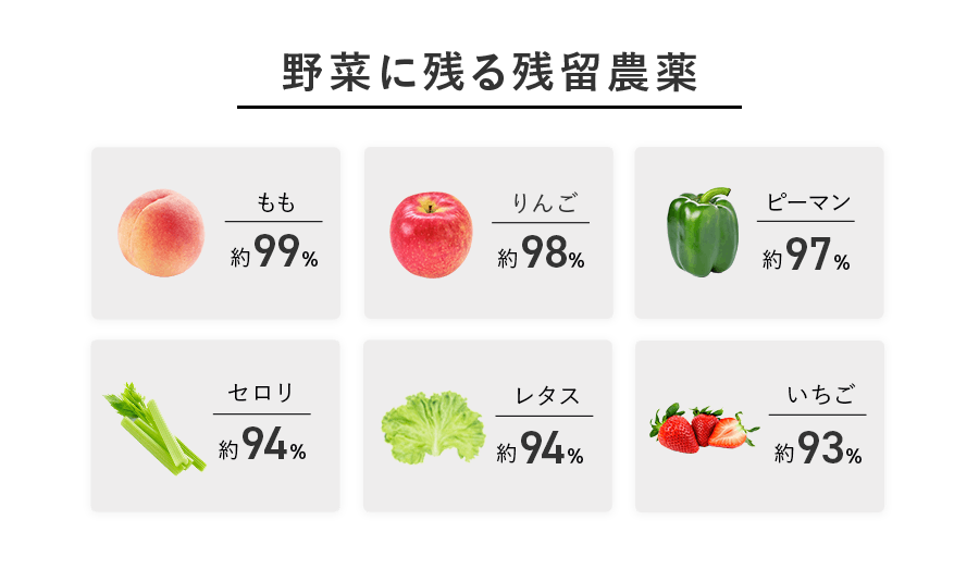 A できません。しかし野菜や果物の表面に付着した農薬や細菌は効果的に除去することができます。