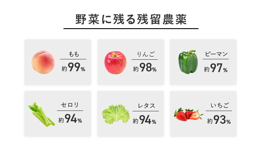 A できません。しかし野菜や果物の表面に付着した農薬や細菌は効果的に除去することができます。