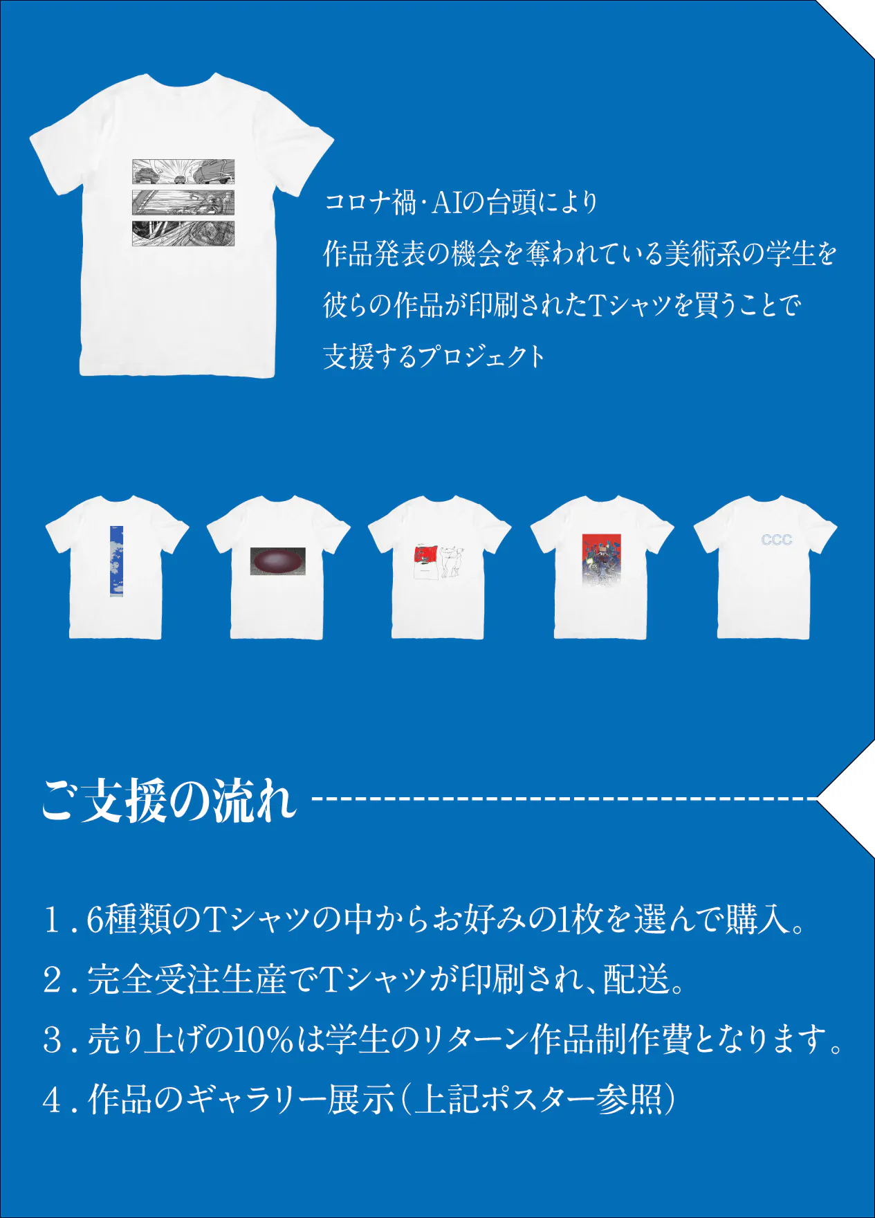 ※上記Tシャツの内一枚を選んでいただき、ご支援いただく形となります。