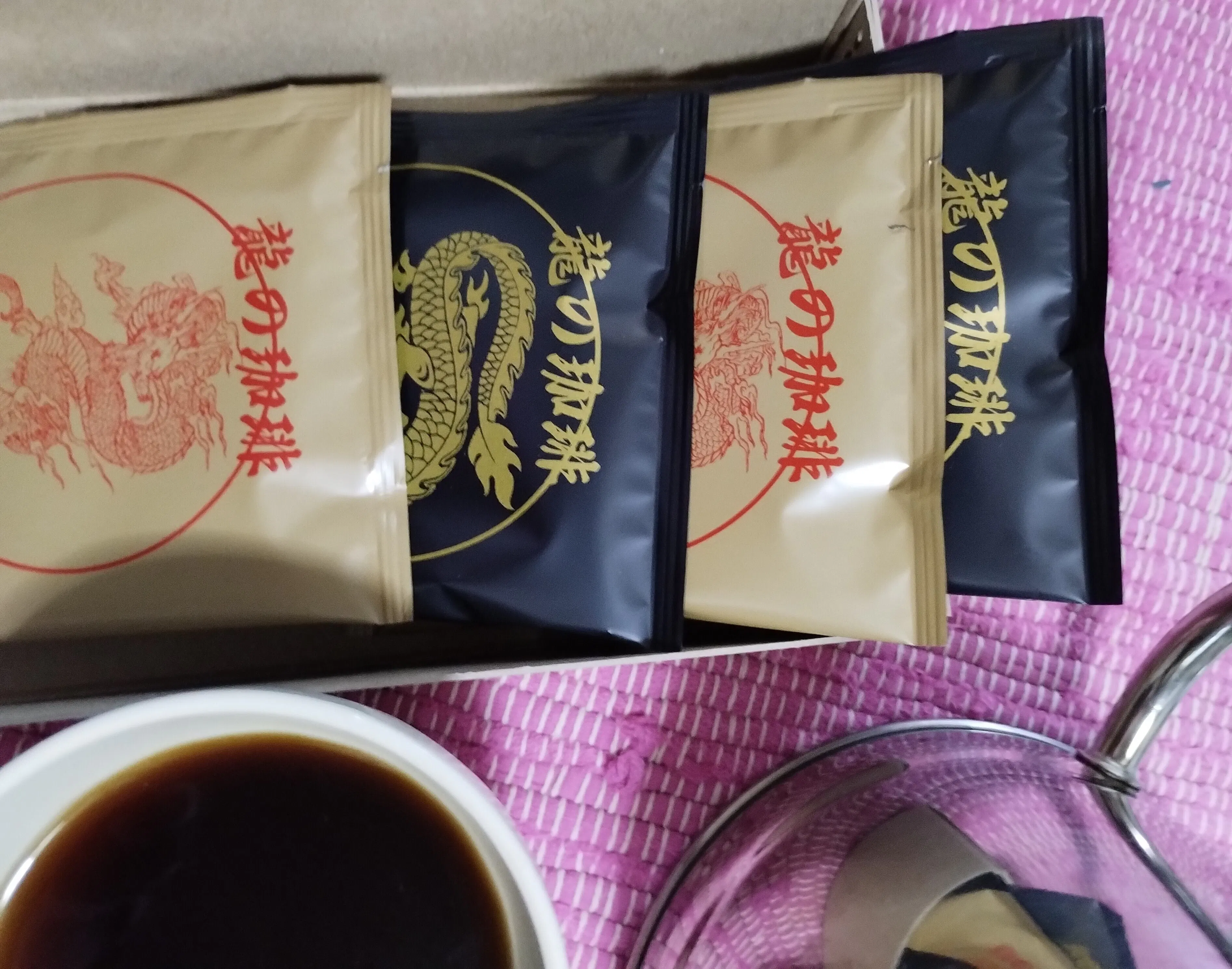 願いを込めて【龍の珈琲】龍の絵柄のパッケージで皆様にお届けする事に致しました。