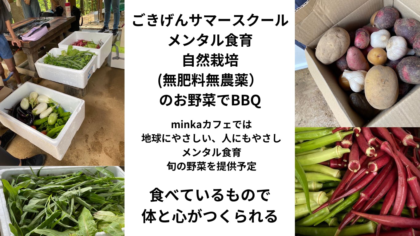 自然栽培のお野菜や、日本古来の発酵食品など、メンタル食育につながるきっかけを、minkaカフェでみなさんに楽しんでもらえたらと思っています。