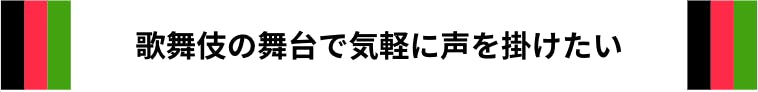 もしくは、歌舞伎は敷居が高いけれども興味はあると思っている方。この企画を通じて、観客側として歌舞伎に参加する楽しさや独自の面白さを知って頂けたらと思います。