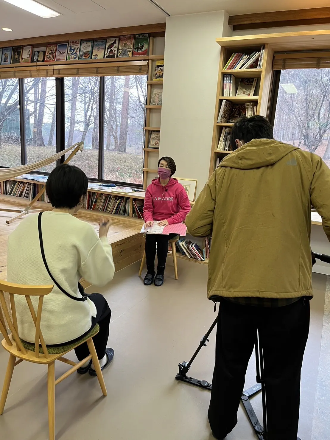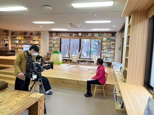 クラブハウス美山にて取材を受ける横澤助産師