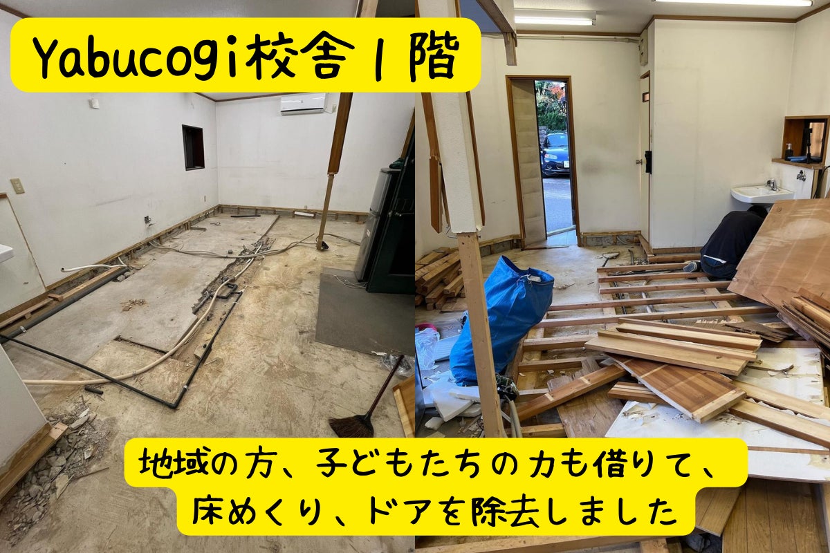集まった資金は、フリースクールYabucogiの1階の改装費用に充てます。子どもたちの可能性を拡げたり、大人と一緒に遊び場を作りたいです。