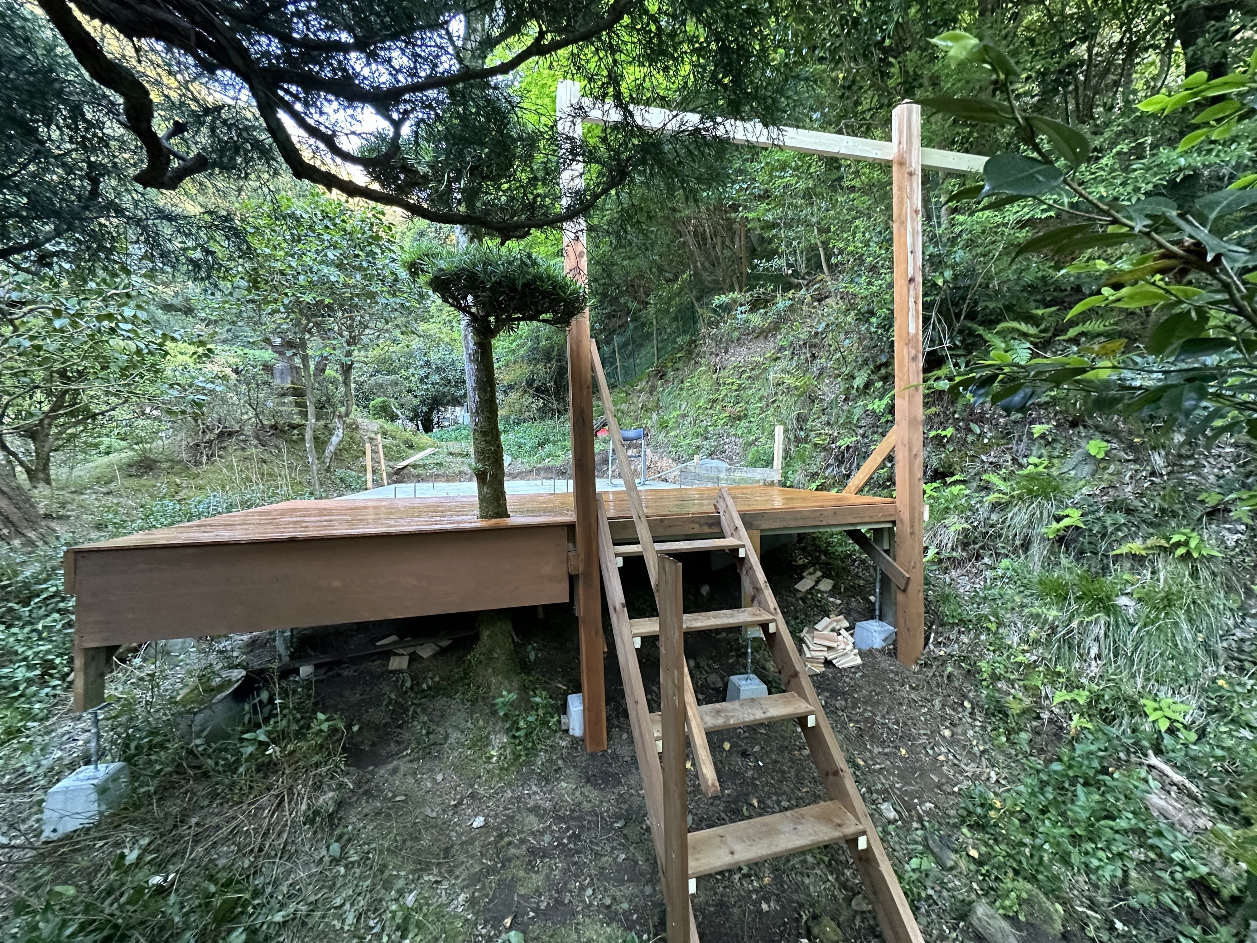 デッキ部分が完成しました!建物はGW中に形になる予定です。天候次第ですが(^_^;)