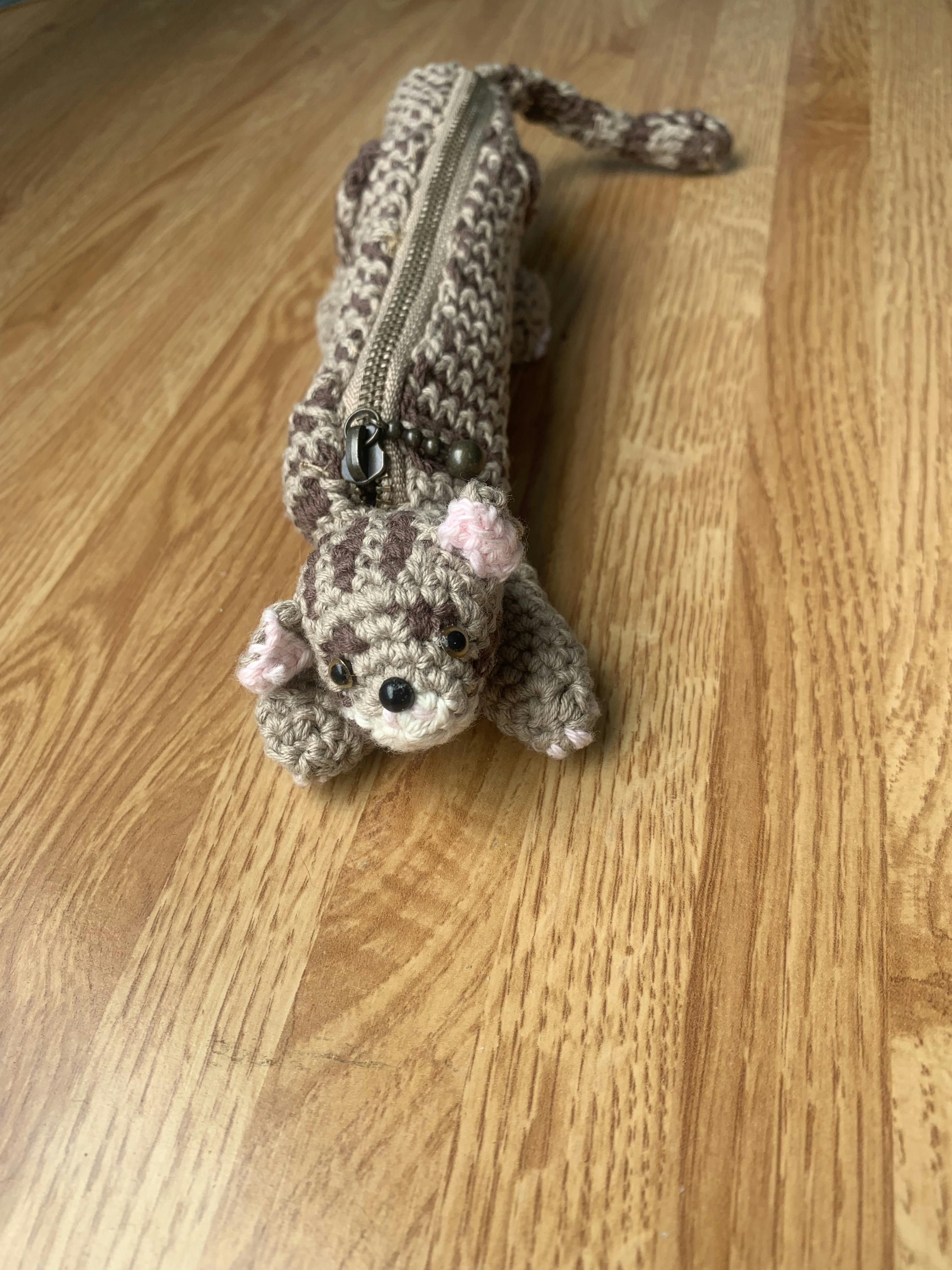 作品名はとらねこです。ペンケースをコットン糸で作りました。