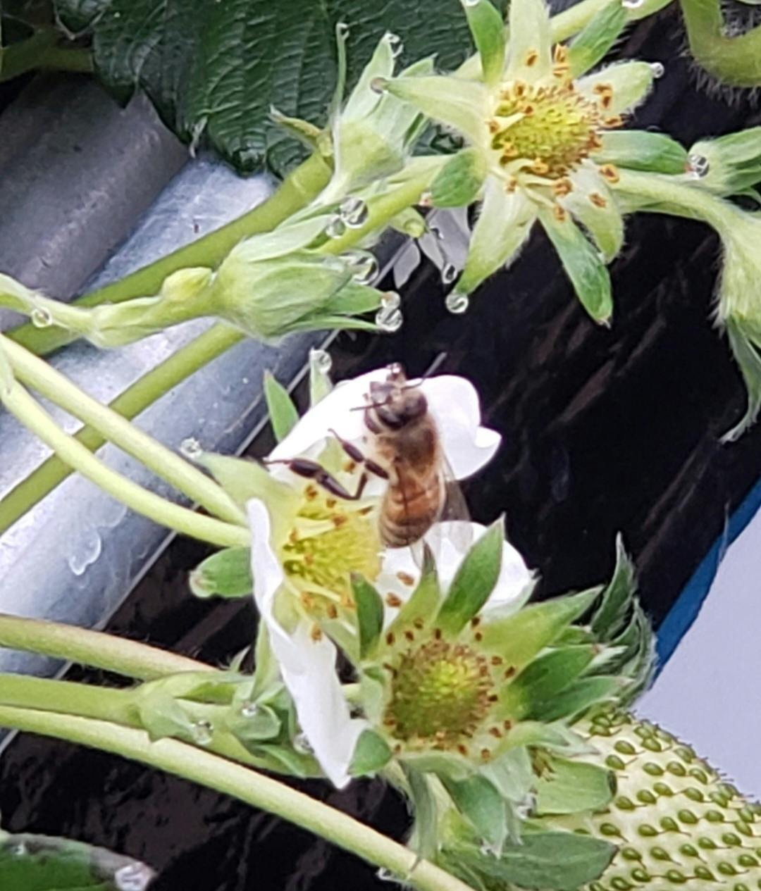 5月 イチゴの花粉交配、撤収、梨の花粉交配、撤収、花の蜜集め