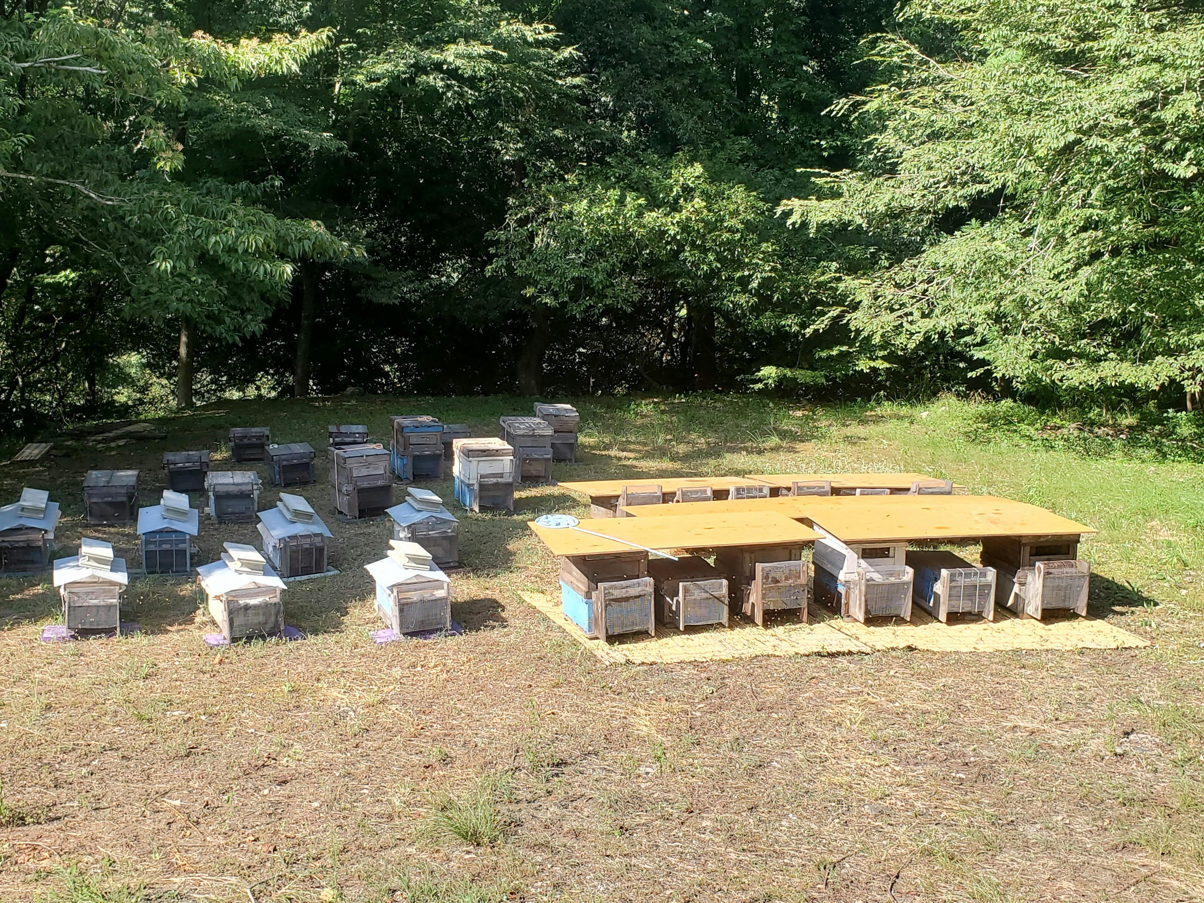 2024/08/31 12:26ご支援くださった皆様へきゅうとく蜂育苑の西川浩司です。この度は貴重なご支援をくださいまして、誠にありがとうございます。お陰さまで、みつばちの種蜂を5箱買うことができました。この5箱を元に、現在は写真の数まで増やすことが出来ております。現在リターンのはちみつを準備中です。※写真は、8月の熊蜂対策の様子です。リターンが遅くなり、誠に申し訳ございません。予定では8月初旬より発送を開始したかったのですが、みつばちの生育状況の都合で、7月8月は蜜を絞ることが出来ませんでした。今後の予定ですが、台風が過ぎ次第、蜜絞りを始めます。採れる蜜は、6月~8月に貯まった夏蜜が混じりますので、花の香りが強い場合があります。ご了承をお願いいたします。必ず送付いたしますので、いましばらくお待ちくださいませ。何卒よろしくお願いいたします。 もっと見る