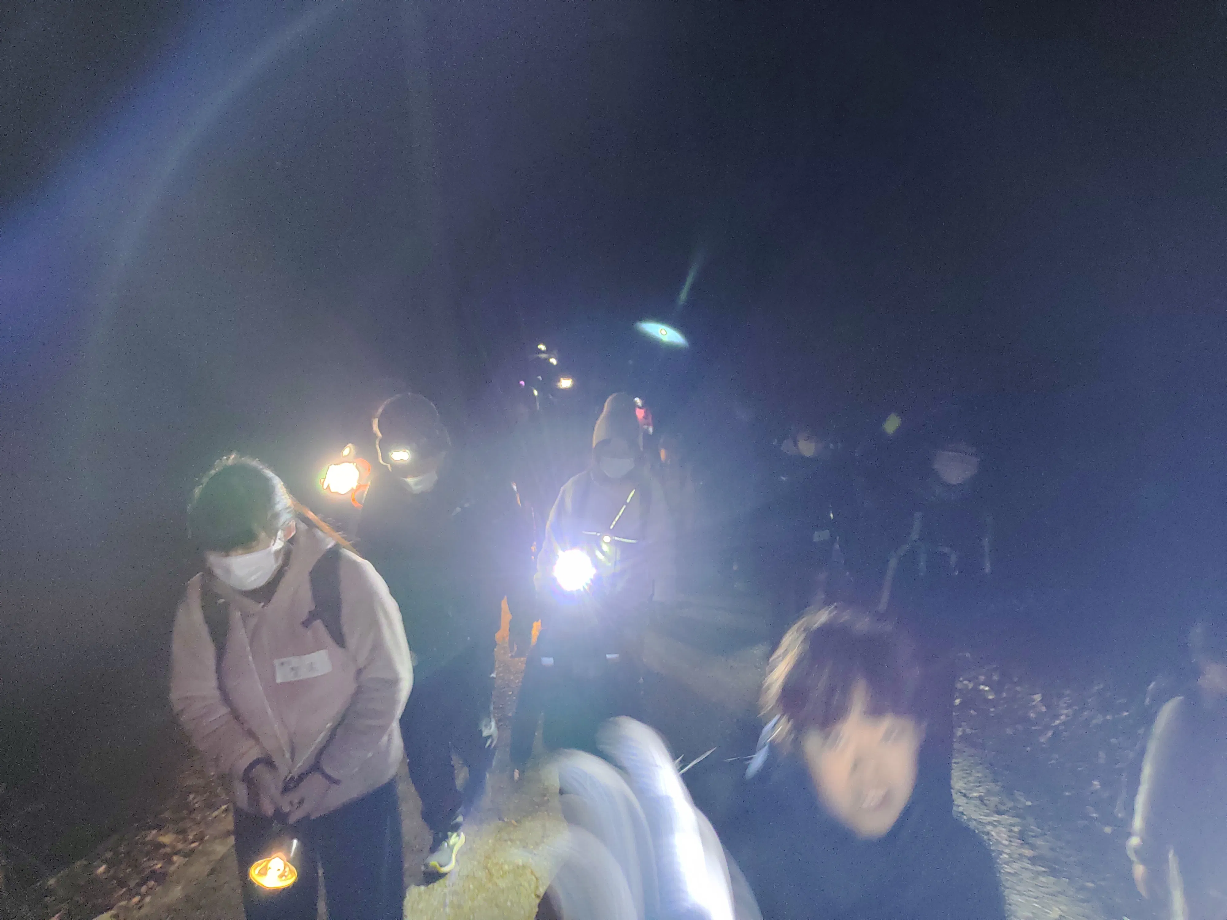 「登山者のヘッドライトの明かりが山の麓から山頂まで輝いておりイルミネーションのように美しかったこと」