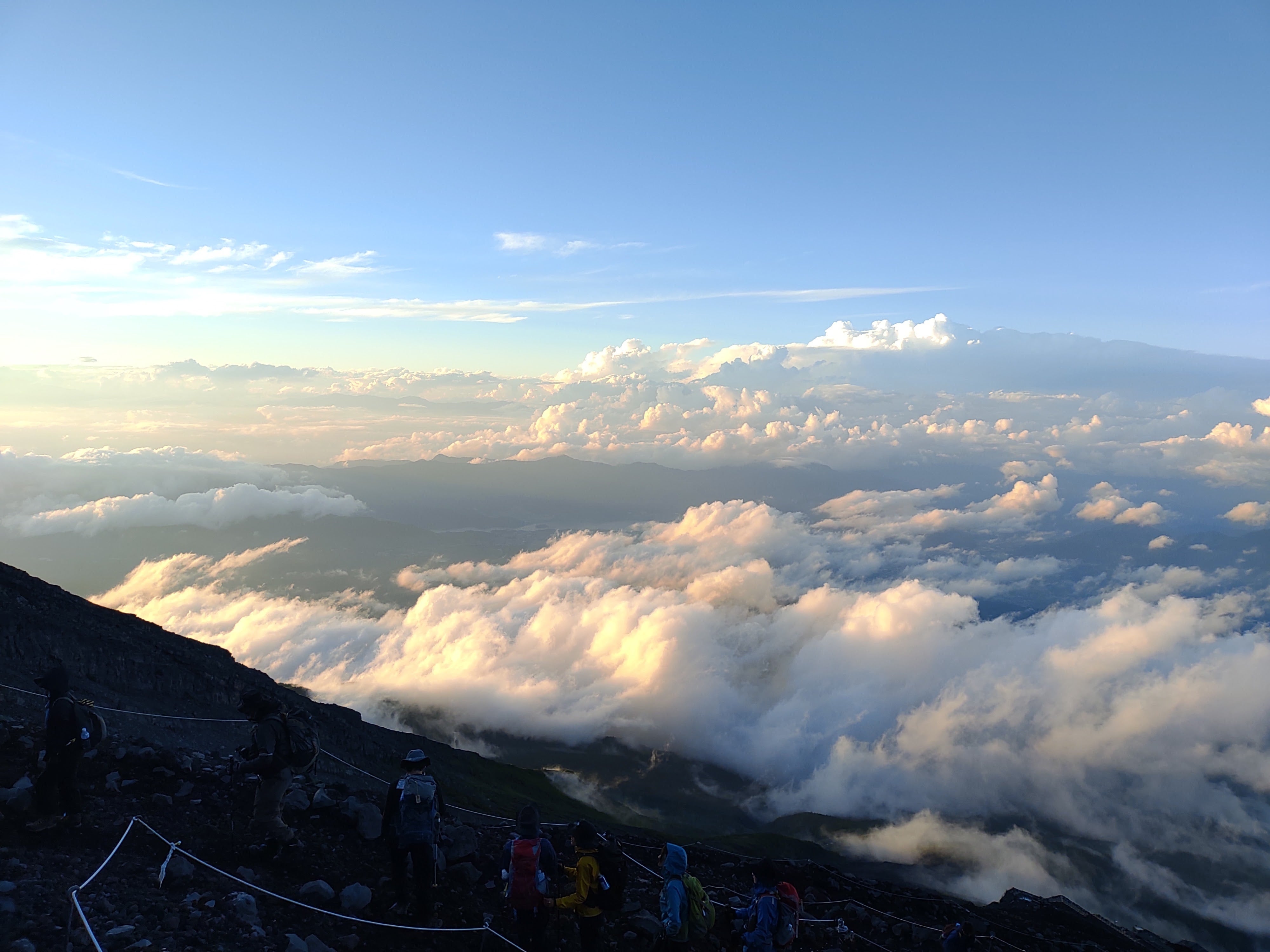 「自分より雲が下にあり夕日が雲を照らしていて美しかったこと(下の写真)」