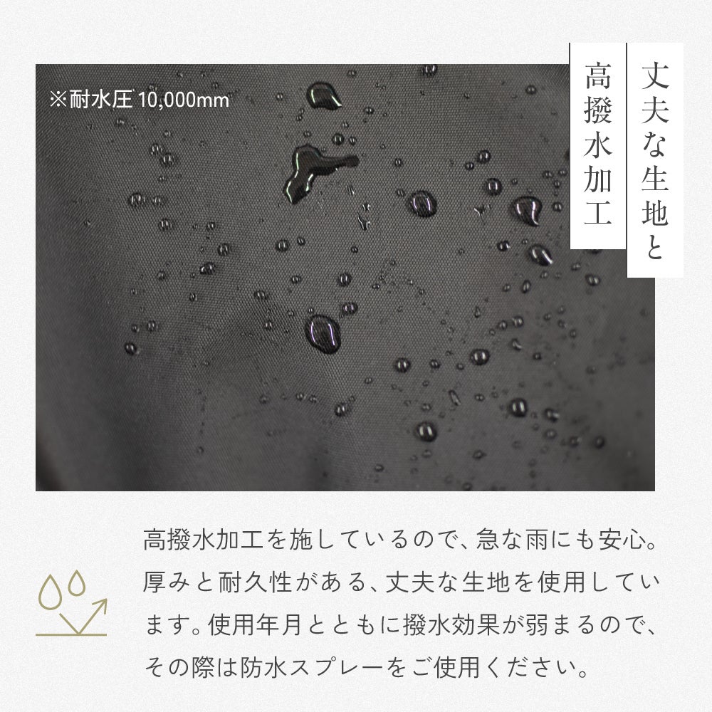 ・生地の裏にPVC(撥水コーティング)加工を施しているので、浸水を防せぐとともに高い耐久性が特徴