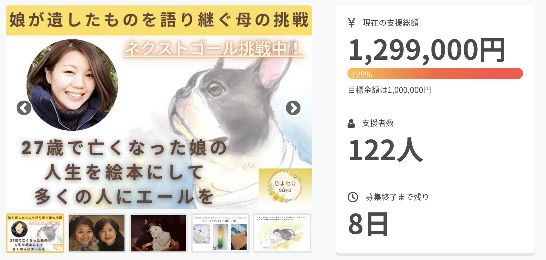 これまでに120人以上の方々からのご支援をいただき、支援金額も130万円目前まできております。