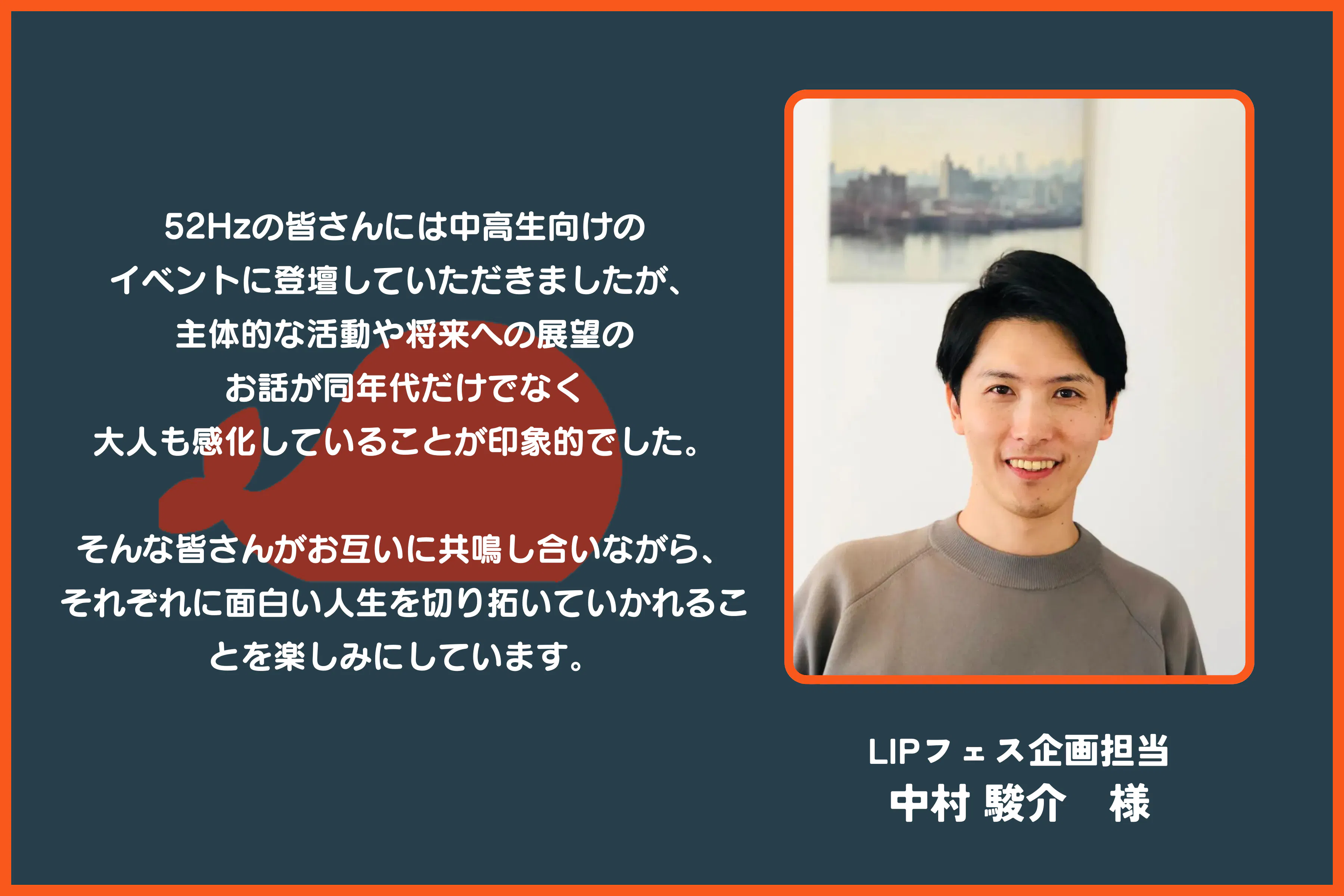「LIP FES」に52Hzの中高生3名をご招待いただきました。