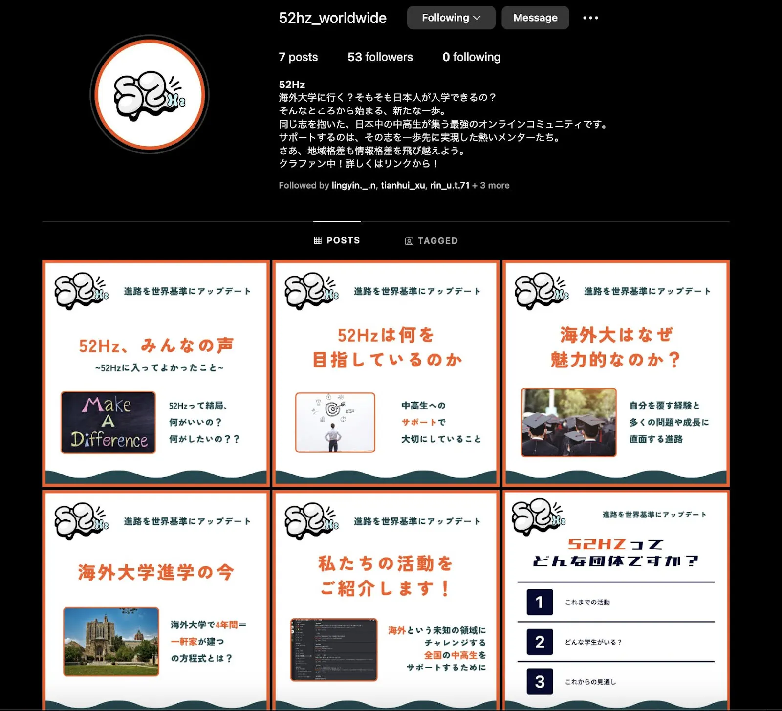 2023年夏のプロジェクト公開から、52Hzは海外大学を目指す中高生のオンラインコミュニティ形成を中心に活動してきました。