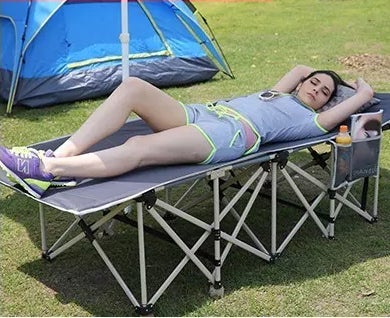 キャンプ・アウトドアでも、持ち運びができるので寝袋だけでなく、ベッドで寝ることができます。