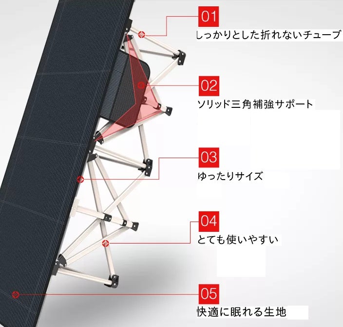 アンブレラ式ベッドマット一体型は、ベッドにマットがつながっているため、ベッドを広げてそのまますぐに横になることができ、快適な眠りを得ることができます。