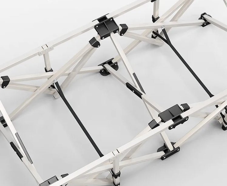 傘を畳んでコンパクトになるように考案されたベッドの骨組みになっています。