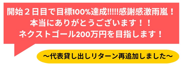 おかげさまでクラウドファンディング開始から48時間で目標額150万円を達成することができました。