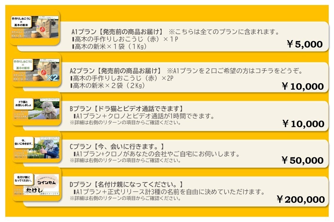 各プランの詳細はリターン内容からご確認ください。