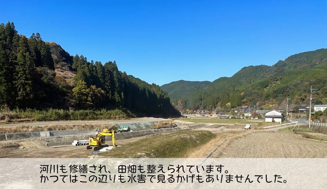 田畑や家屋は激流に流され、その影響で過疎化は加速しました。現在は復興も進み、ボクの勤務するコミュニティセンターの前には新しく畑が作られ、美しい景観を取り戻そうとしています。