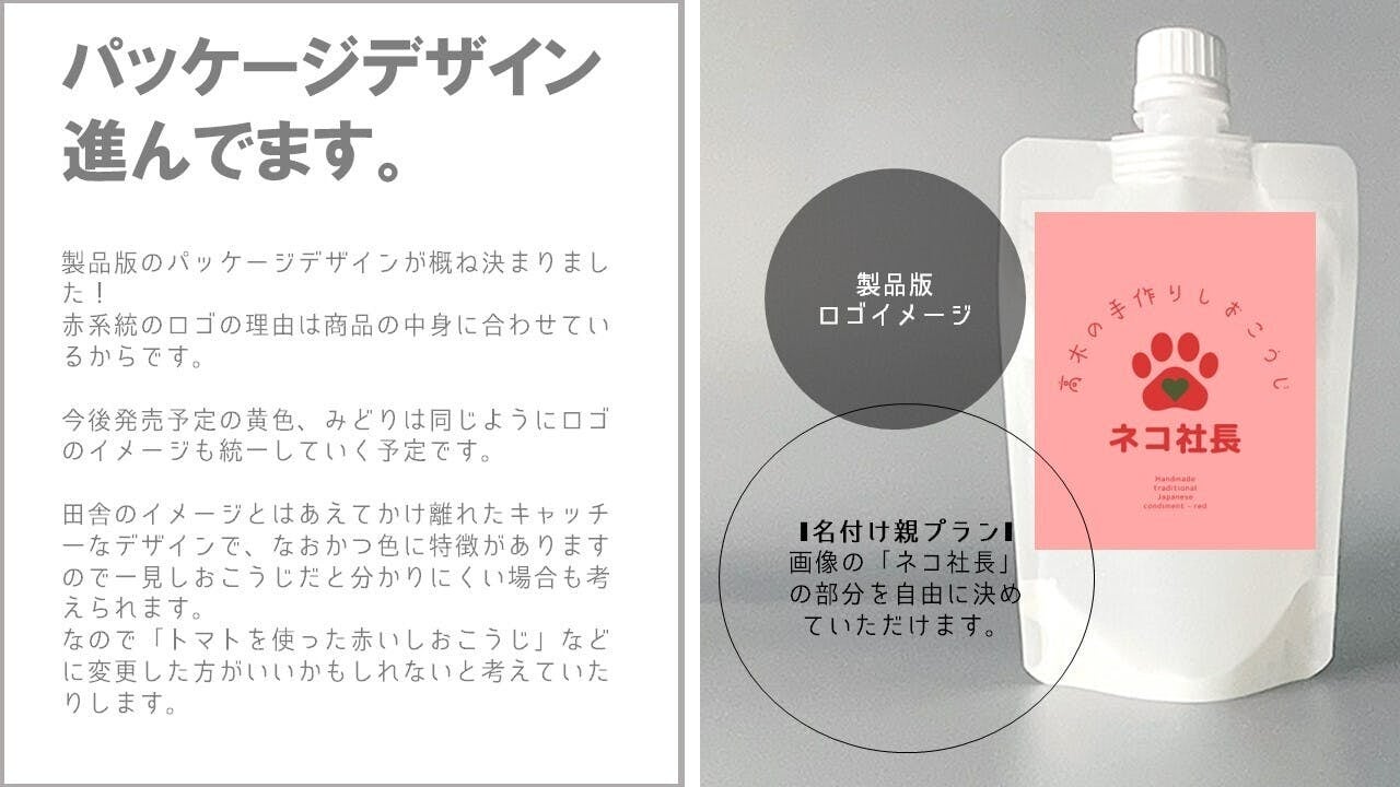 2024/02/06 15:47みなさんお世話になっております!クロノです!プロジェクト掲載終了後、ご報告が出来ず申し訳ございませんでした。商品の製造やパッケージデザインの仕上げを行っておりまして、落ち着いたタイミングでお知らせしようと考えておりました。(実は試作や製造が楽しくて夢中になっていたからなんて言えない)ということで今後のスケジュールはコチラです。・2/15 リターン品発送予定・2/19 正式サービス開始予定(ECサイト開設)もう少し商品到着までお楽しみにお待ちください!いい意味で”人口162人の集落で作られた感のない”パッケージになったと思いますので!それでは、引き続きよろしくお願いいたします。 もっと見る【活動報告#18 お礼の動画を投稿しました!】