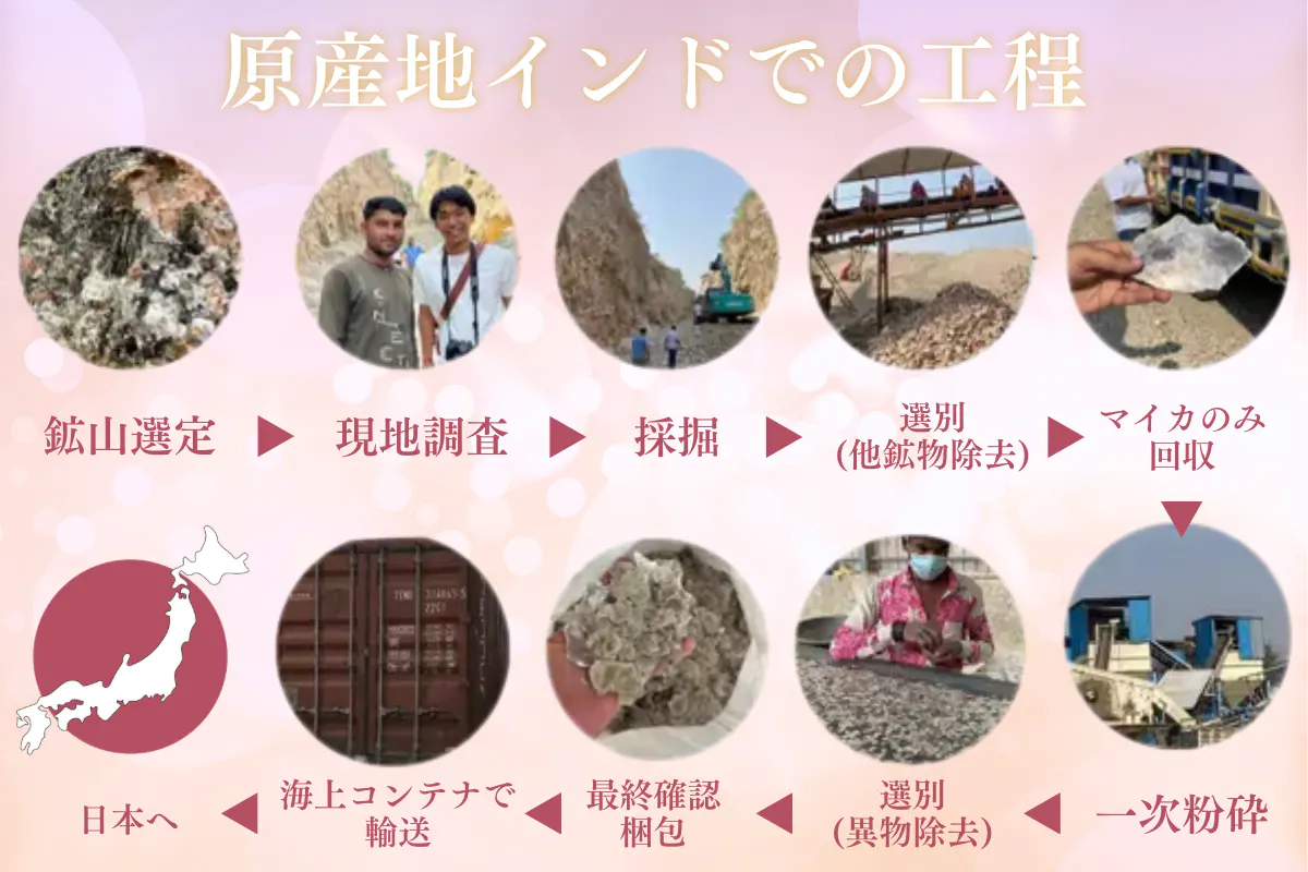 私たちは、本製品の原料であるマイカ鉱山から、すべての情報を公開致します。