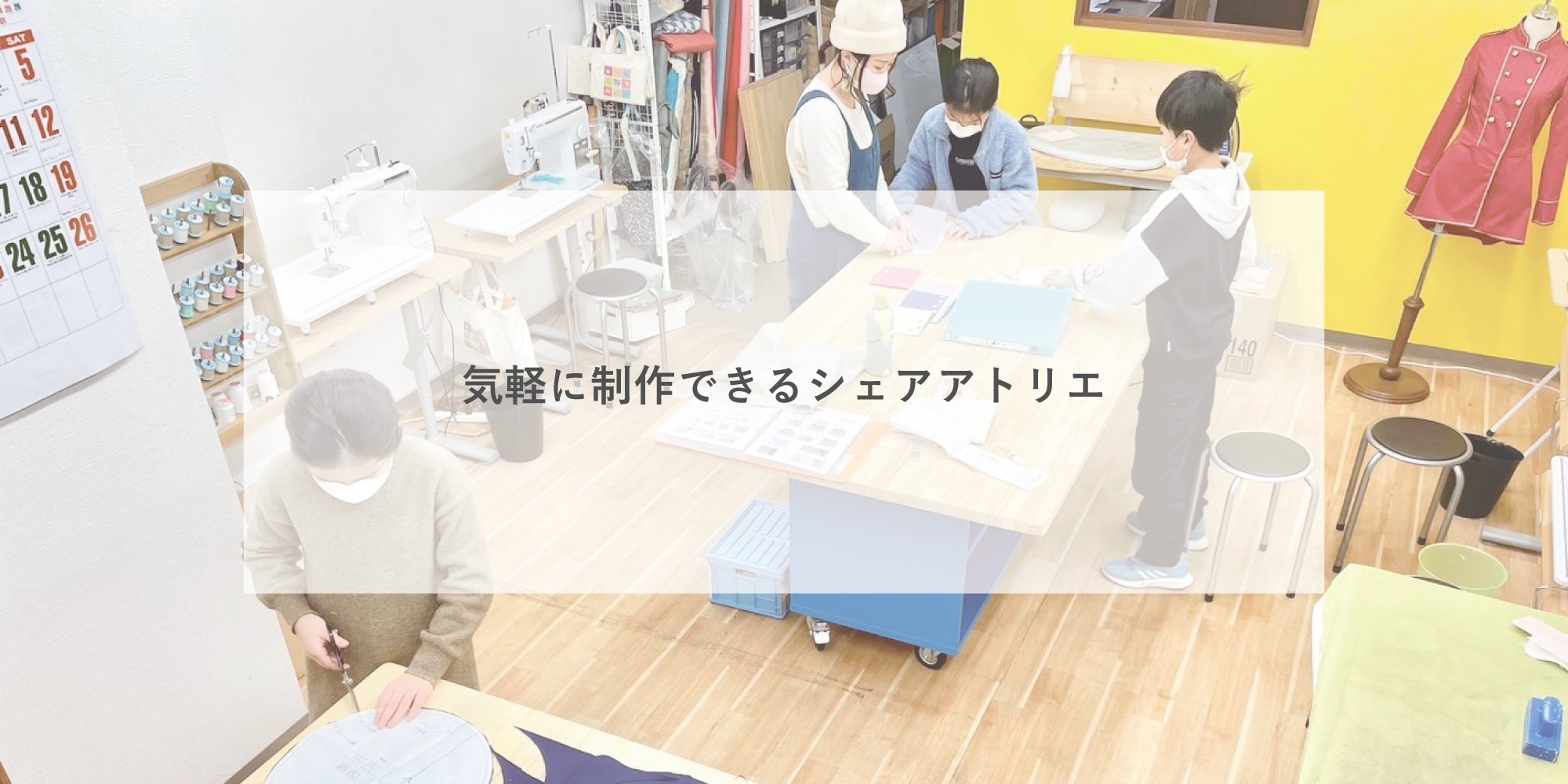 こども洋裁教室を運営するため、ミシンやアイロンなど、縫製に関する機材をある程度取り揃えています。教室が開催されていない時間はミシンを含む道具を使えるシェアアトリエとし、ご自宅に道具がなくても ”ものづくり” に気軽にトライできます。まずは揃っている環境で作る楽しさに触れていただけたら嬉しいです。