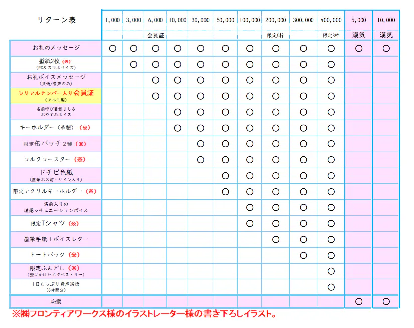 こちらはリターン品を豪華にするとその分の製作費が発生し目標金額が高くなってしまう為、とても豪華な品物に出来ず申し訳ございません。