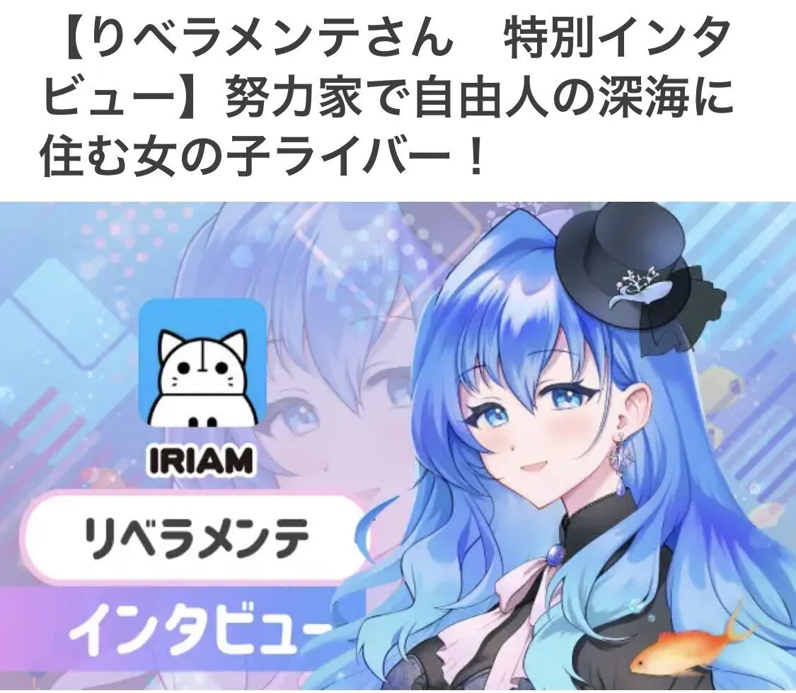 こんにちは!私はVtuberデビューを目指しているりベラメンテと申します。普段は主に IRIAMで 雑談や歌ってみたなどを配信している、ダイバーでライバーおやすみ前配信者です。