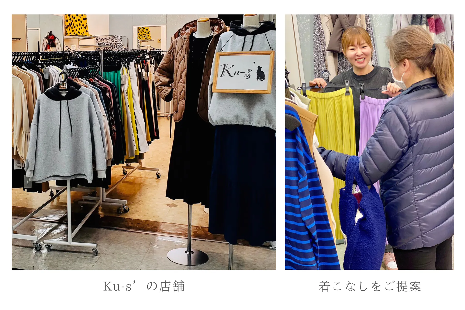 コーディネートで解決出来るのならコーディネートで解決し、サイズが問題なのであればお直ししてご対応する。