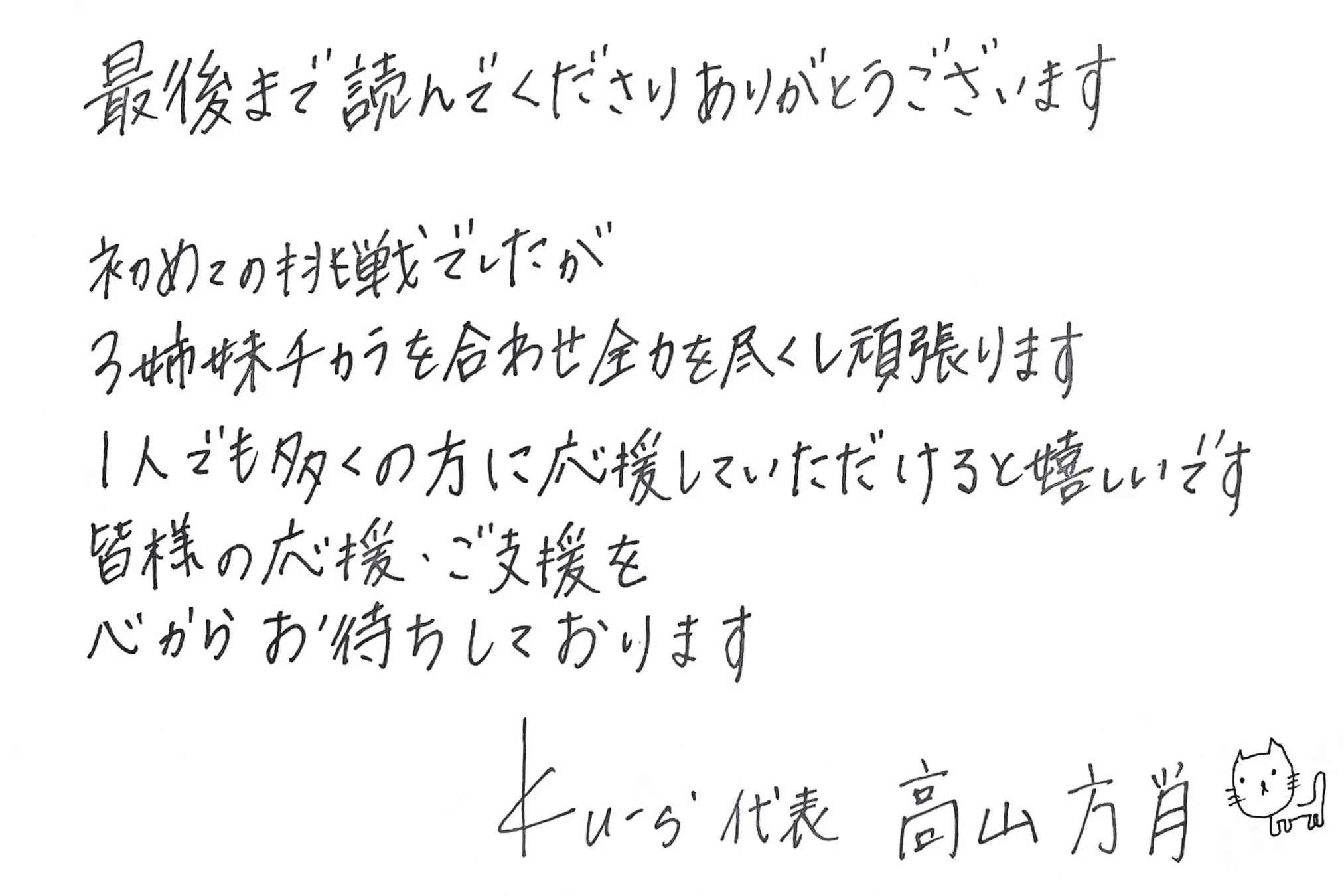 ご支援・応援いただきありがとうございました!