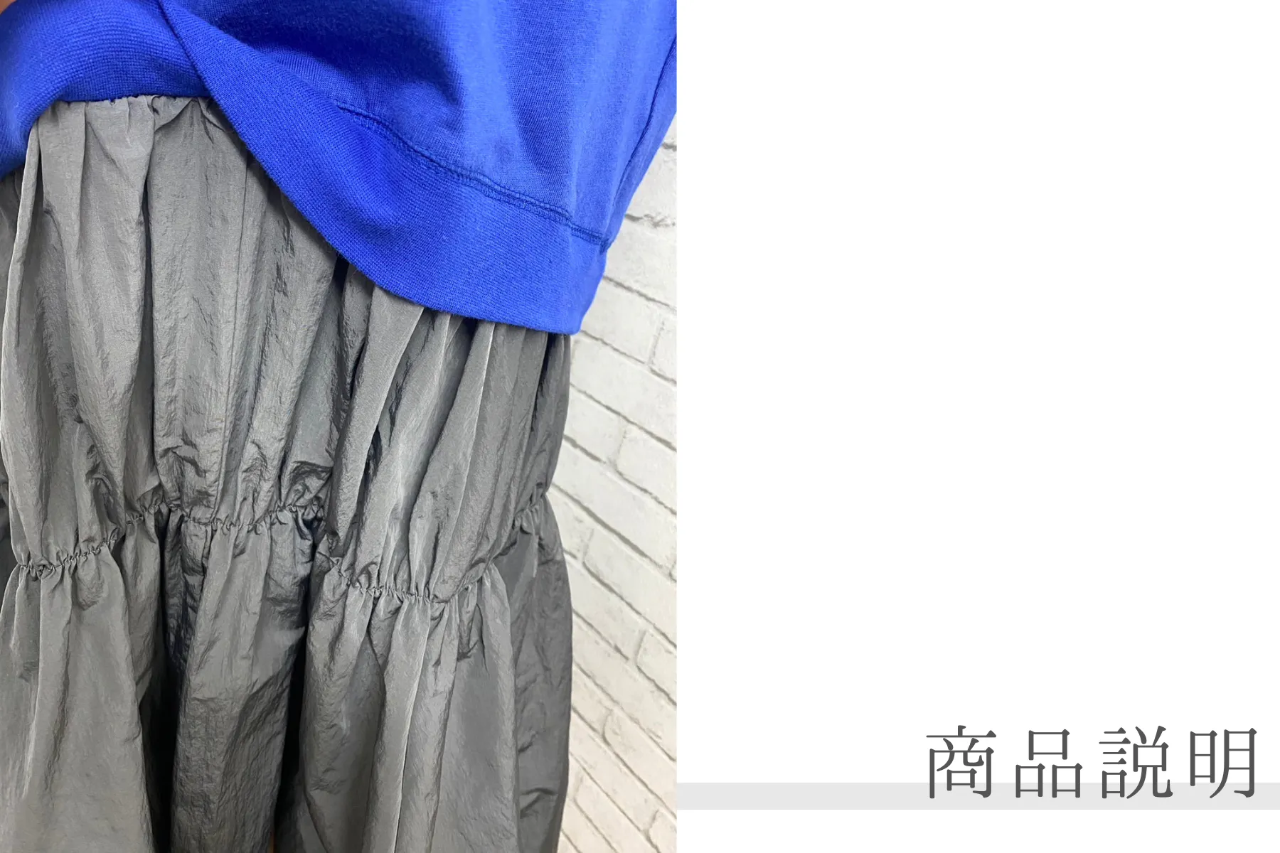 ・スカート部分がゴムシャーリングのデザインになっているので ふんわりとしたシルエットでスタイルカバー力◎