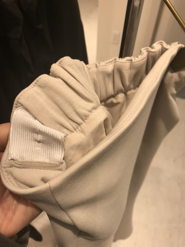 ・ゴムで調節されるのは背中側のため、お腹側はスッキリした見た目。