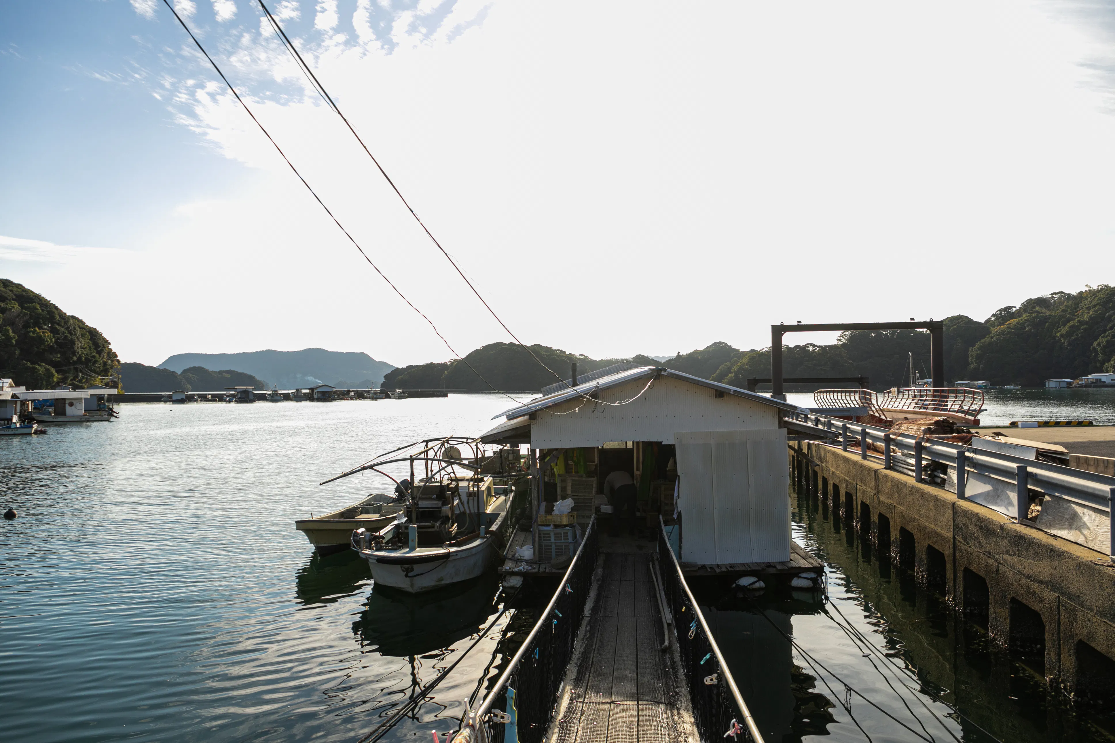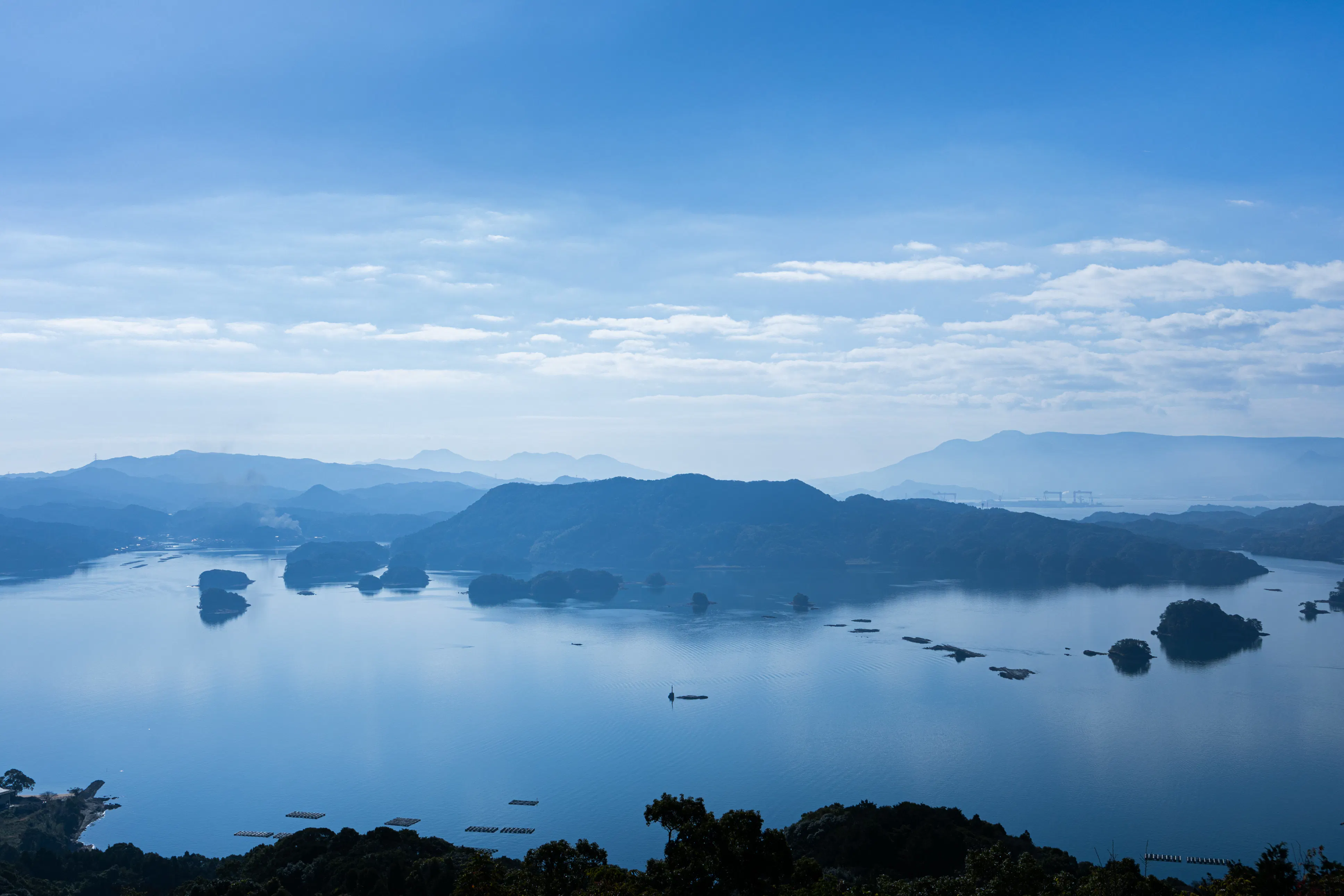 漁港から少し沖にでると大きく入り込んだ波静かな伊万里湾東部、佐賀県唐津市肥前町と