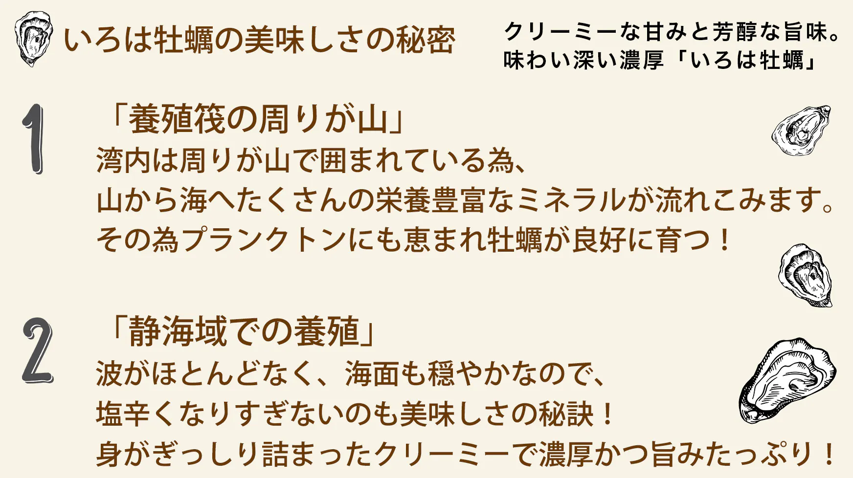 その「いろは島」から名前をとり「いろは牡蠣」と呼んでいます。